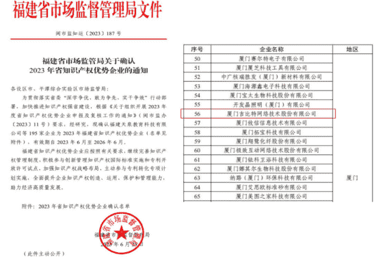 近日,,福建省市场监督管理局公示了2023年福建省知识产权优势企业名单,,厦门1win网络技术股份有限公司(以下简称“1win”或“公司”)榜上有名。。。。